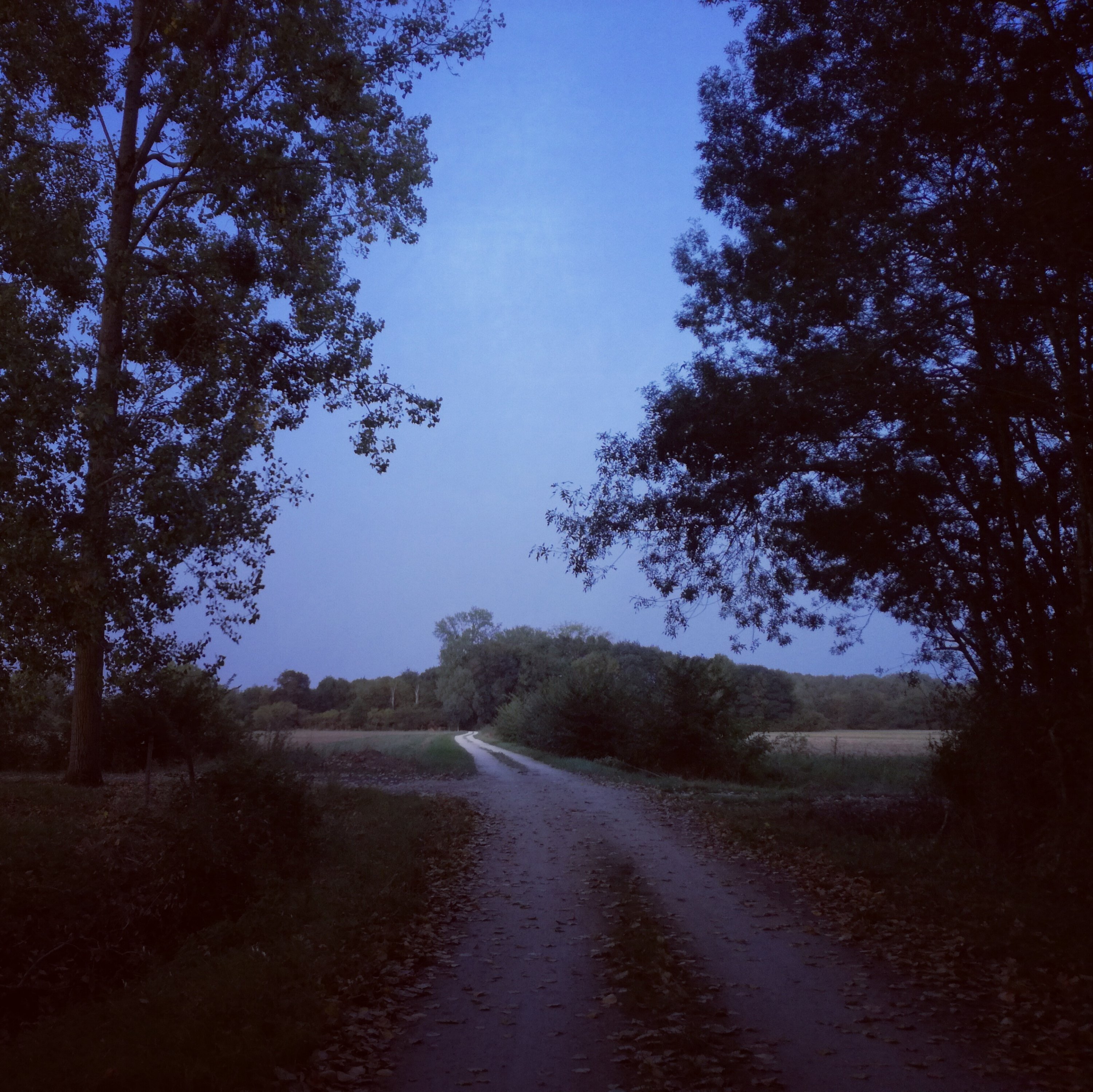 In de vroege vooravond stap ik verder. Ik heb nog geen zin om op te houden. In een open vlakte hoor ik de krekels in harmonie hetzelfde ritme aannemen. Hihi, mijn fantasie slaat op hol. Ik zie me hier al staan in short. Een zwarte lange jas met twee toppen achteraan, wit strikje. Op mijn linkerkant de krekels, rechts de koeien, een vogel die er af en toe tussenkomt en de buizerd die de start geeft van een nieuw stukje muziek. Mijn wandelstokken worden dirigentstokken. Het pelgrimskoor is geboren. (glimlacht)