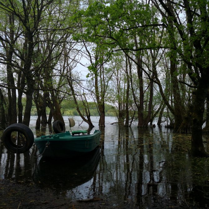 Aan het meer kies ik niet voor de GR145/via Francigena met zijn aangelegde kades. Wel voor de pure natuur weg van toerisme. Wat een rust. Langs het water vissers in hun tent. Een boot die dobbert en een man geknield met een soort kijker waarmee hij in het water kijkt. Een tent en twee jongeren voor een schermpje. Een oudere vrouw ligt languit te rusten. Aan haar voeten rubberlaarzen. Waw, wat een mooi stuk ongerepte natuur.
