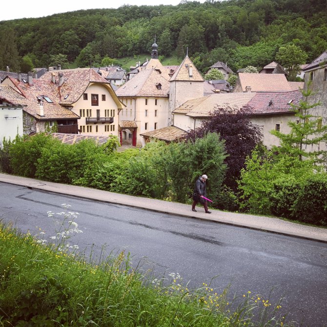 Ik verlaat Romainmôtier. Zuurstof, zuurstof…. lucht heb ik nodig… Foert…. Ik voel dat ik het een eindje met me meedraag….gelukkig ben ik het me bewust en kan ik het rustig maken in mijn denken en de weg naar mijn hart maken.