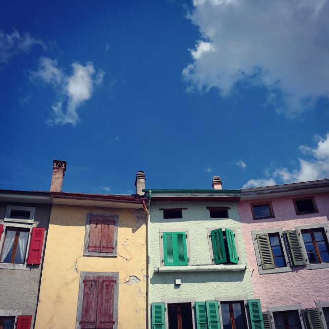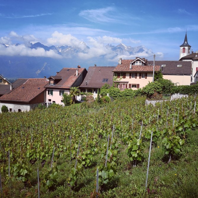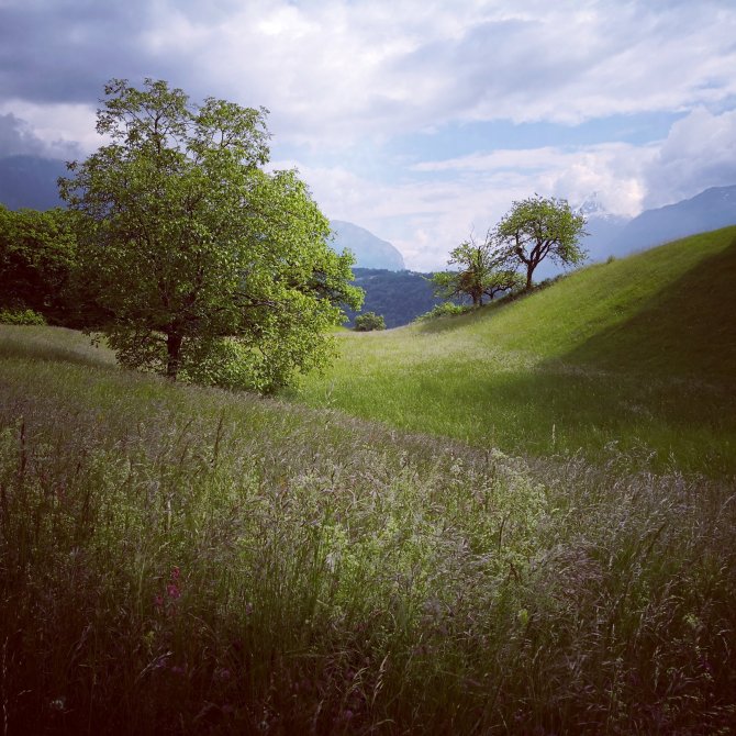 Met een open hemel verlaat ik la Roche en neem ik afscheid van Anne-Marie. Een asfaltweg neemt me verder mee dieper in het dal en weg van le Lac Leman. Rechts van mij landbouwgrond. Electrische masten. De autosnelweg. Le Gramont (gebergte)