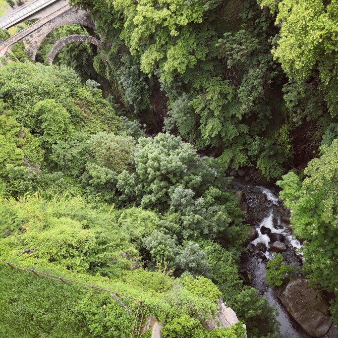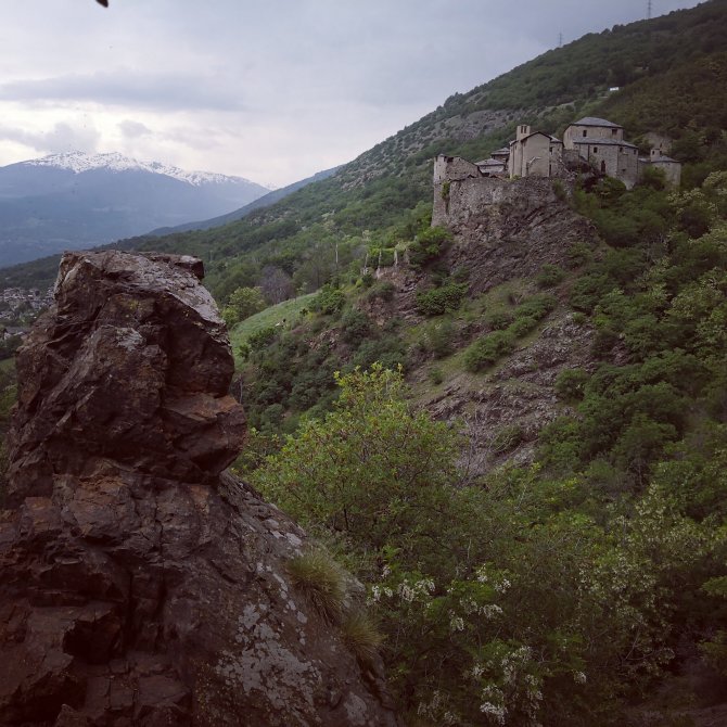 Hoog op een heuvel. Links rechts, voor mij bergen met zijn sneeuwtoppen. Achter mij een kerk. Ik neem tijd en ruimte om geluiden van wat ondermij aan het gebeuren is in me te opnemen. Kinderen op de speelplaats. Oudere traditionele huizen, recente beton gebouwen, kleine industrie gebouwen. Een supermarkt. En daar tussenin een boer wandelend door de stad met zijn koeien op weg naar of komend van zijn weide. Vroeger moesten ze waarschijnlijk gewoon de stal uitgelaten worden. Veertig bergtoppen, zijn hier zichtbaar de hoogste telt 3600 meter.