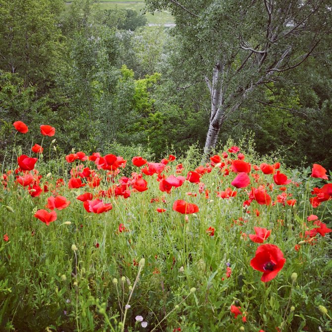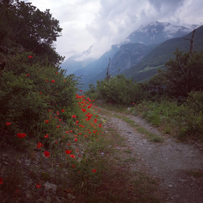 Kamperfoelie , eglantier en chèvrefeuille geuren de boswegen. De klaprozen zijn talrijk aanwezig, zelfs tussen de druivenranken. Er wordt hier heel weinig tot niet gesproeid tegen het onkruid. Wat fijn om in een pure, natuurlijke omgeving te wandelen.