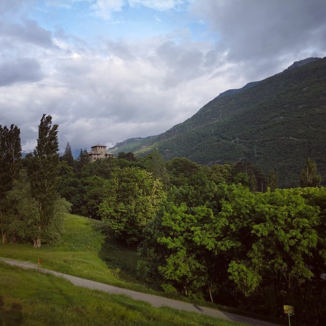 De man maakt teken dat ik kan gaan. Ter hoogte vanwaar hij staat vraagt hij me een tal van vragen. “Vous allez ou, avec qui, comment… Moi j’habite aux château. J’ai un B&B”, verteld hij in een gebroken Frans terwijl hij naar de torens wijst.