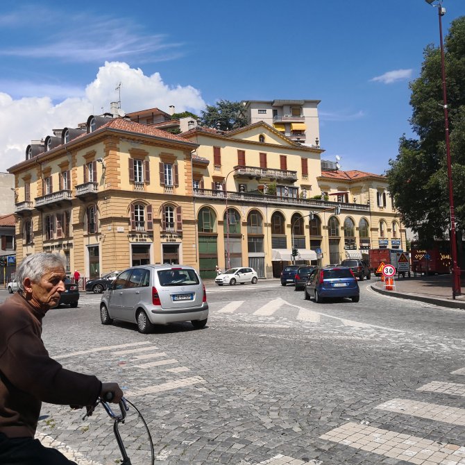 In Ivrea doe ik een poging om een koffie te bestellen. Blijkbaar veranderd de naam in deze regio. Ik probeer er wijs uit te raken van café Lungo (mini straf), naar café Americano (mini met kannetje water, bah), naar een café Lungo tassa grosso (een doorlopende café lungo maar dan langer doorgelopen, in een doorsnee tas, een Doppio (dubbele koffie) daar staat mijn haar van recht.