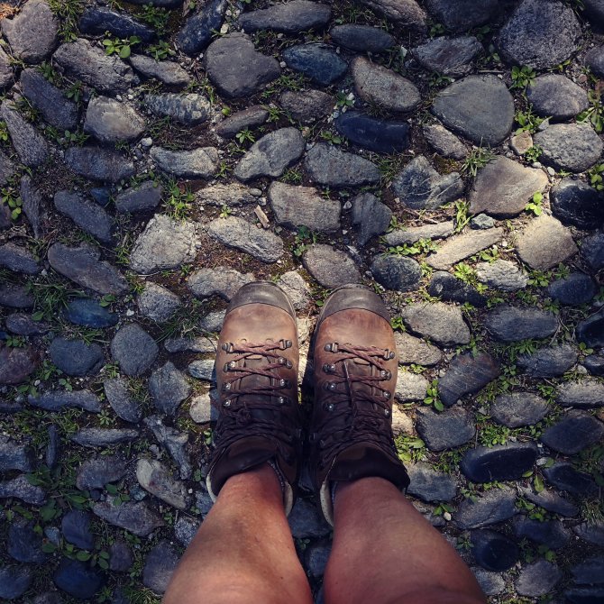 Op mijn kuiten is de avondzon nog voelbaar, vooraan staat de maan al hoog.