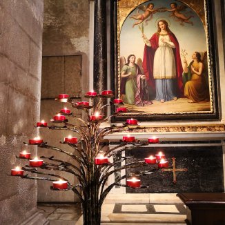 In de collegiate dei Santi Quirico e Giullata staat een prachtig vermoedelijk wassenbeeld van Moeder Theresa. Ik kan mijn kijk niet vrij maken van het beeld. Hoe langer ik ze aankijk hoe beter ik kan zien dat een traan uit haar linker oog komt. Bijna echt.