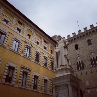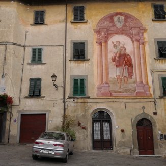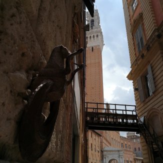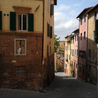En hoewel velen melden dat het deel Lucca tem Sienna het mooiste stuk zou zijn, ga ik hier tegendraads op in… als pelgrim heb ik niets aan souvenir winkels, massa restaurant, luxe, beton… Het neemt niet weg dat ik ”s morgens om zes uur wel kan genieten van het midden van een oude stad. Dan pas is ook zichtbaar wat zichtbaar mag zijn.