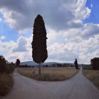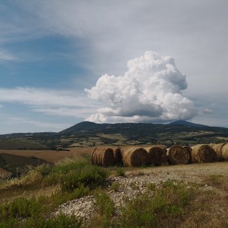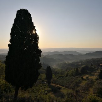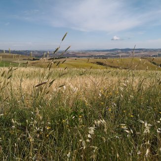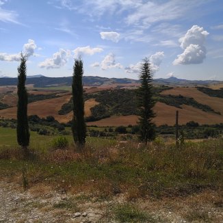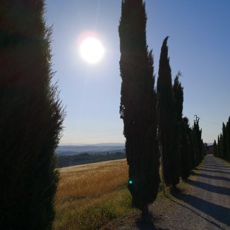 Vier dagen reeds in Toscanië…gisteren was de eerste dag dat ik het landschap wat kon appreciëren. Een waw gevoel heb ik hier niet. De momenten waar ik het meest ervan kan genieten is ’s morgens vroeg rond zes uur, dan schijnt de zon nog niet hard, nadien is alles platgebrand.