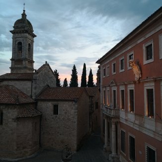 Ik open het raam van de kamer… De straat lampen zijn nog aan. Kleine wolken hangen boven San Quirico d’orcia. Samen met Jean-Paul verlaat ik het dorp. Een lange tocht staat ons te wachten… 33 km richting Abbadia San Salvator.