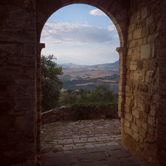 Buenconvento… Een middeleeuwse stad-je ontwaakt terwijl ik al een uur genoten heb van het ochtendgloren. “Buongiorno,un caffè e una brioche crema per favore.” Mijn ontbijt halte. Verschillende mensen komen voorbij gewandeld de krant onder de arm.