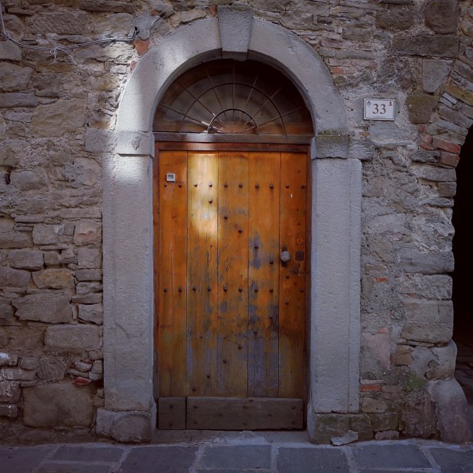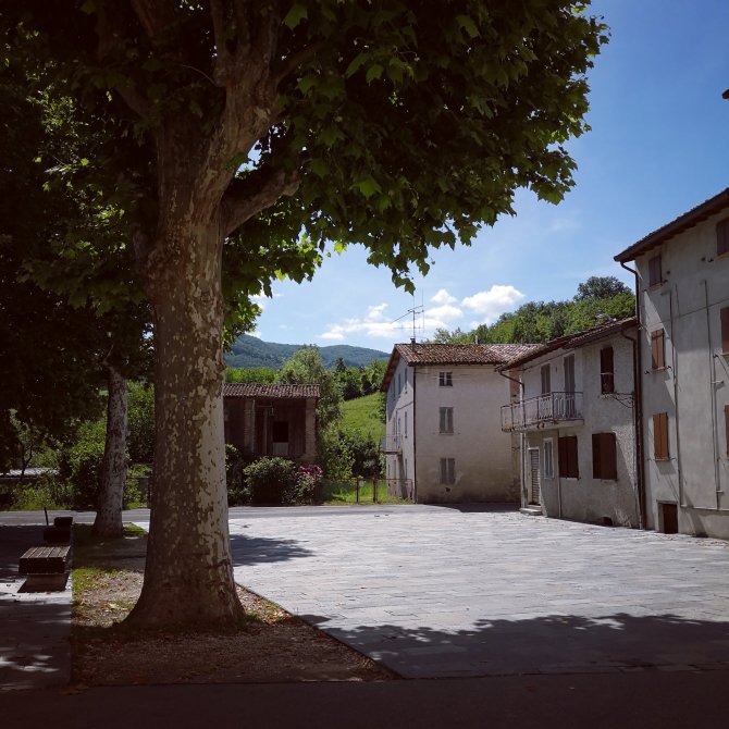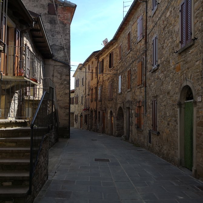 Terwijl ik een pauze hou in een klein dorpje, hoor ik getik. Wandelstokken.