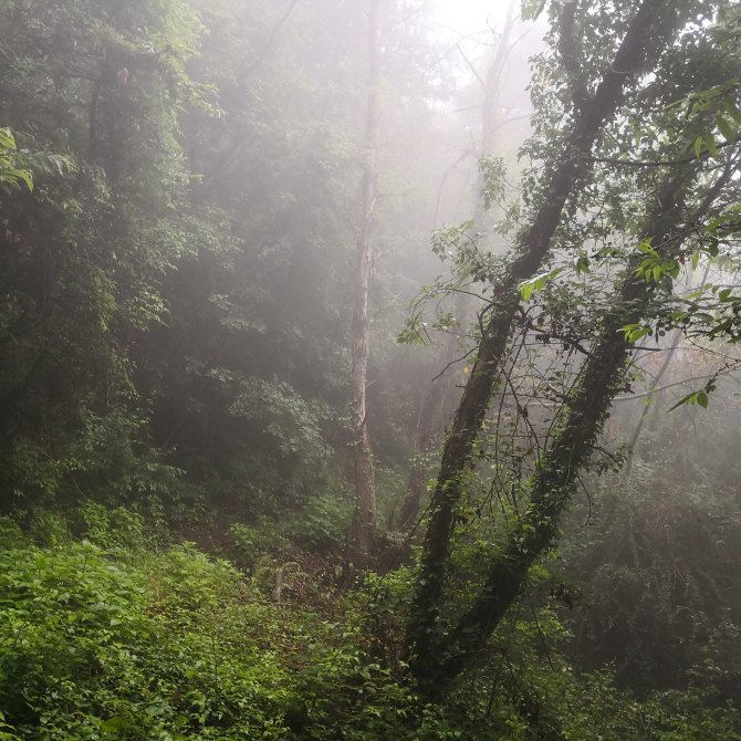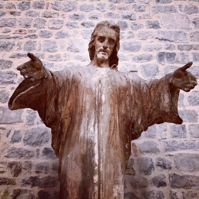 De regen is wat minder geworden. In de verte op mijn linkerkant een dorp op de top van een heuvel. Het vergezicht is prachtig. Witte mist afwisselend tussen de heuvels. Een donker grijze hemel. De regen klettert terug. Krakkkk. Donder… Bliksem… Krakkkk…Een zin komt door meheen ‘Eli, Eli, lemah sabachthani’. Tranen vloeien terug.