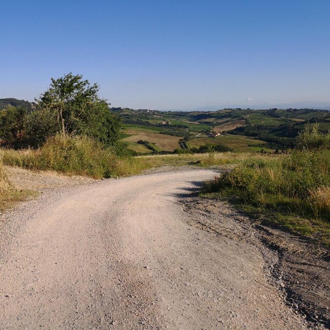 Langs de weg midden de velden komt een man aangewandeld. Hij vraagt me iets in het Italiaans, waarop ik niet op kan antwoorden. Uiteindelijk begreep ik dat hij vroeg waar ik was begonnen, “Lucca-Siena?” “No-no… België-Roma.” Het dringt niet onmiddellijk tot hen door… tot… “och, België-Roma”!, zegt hij verwonderd. Hij haalt er zijn camera bij “photo, Selfie”. Voilà, vereeuwigd in Italië.