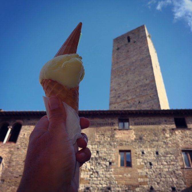 Wat ik wel niet heb kunnen laten is… een ijsje van de zogenaamde beste ijs van de wereld in San Gimignano. Ik heb ze dan ook allebei uitgetest en bij de beste er nog eens een dubbele gegeten ‘Santé mama’ thx voor de tip 😉