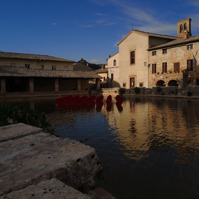 In Bagno Vignoni nemen we even rust. Laurent vergezeld ons bij het ontbijt en verlaat ons ook snel. Ik geniet van het landschap en het samen zijn. We vinden elkaar in wat we delen en dit heeft een fijn gevoel. Het voelt goed.