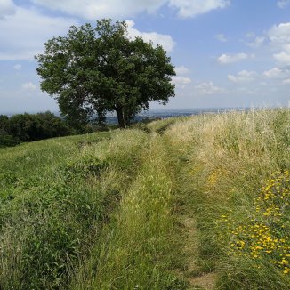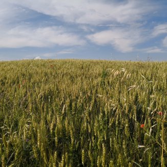 Een prachtig landschap. Zachte tinten, golvende lijnen, pastelkleuren… een levendschilderij.