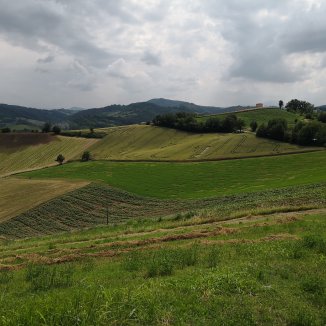Vanop de eerste heuvels een vergezicht op het gebied rond Piacenza en Fidenza waar ik de voorbije dagen was.