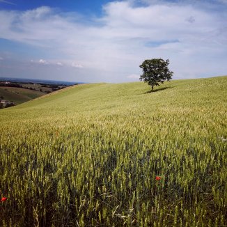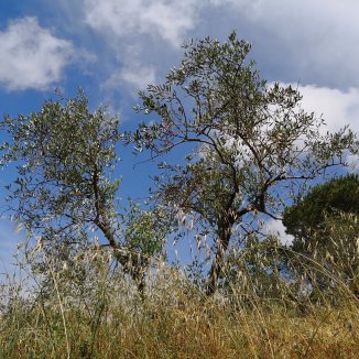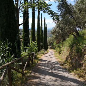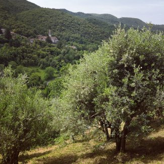 Doorheen kleine dorpen, langs geurende olijfboomgaarden. Fladderende vlinders. Fleurige bloemen. Honden die hun baas verwittigen. Romaanse bruggen en wegen. Onder mijn voeten afwisselend gras, keien, klei… Kortom ik geniet.