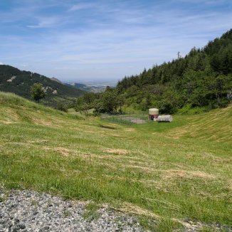 Op een splitsing zie ik de Via Francigena staan, naar links en via Ostello van de Via Francigena, rechts. Even voel ik twijfel… Ik luister naar mijn lichaam… het is genoeg geweest voor vandaag en ga naar rechts de weg afdalend in een prachtig bos. De Passo de la Cissa, kan ik eventueel morgen doen.