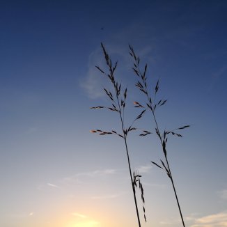 Boven op een heuvel, rondom mij heuvels. Een opkomende zon. De wind. Ik word gewaar…. Hmmm