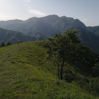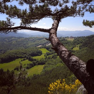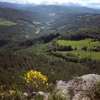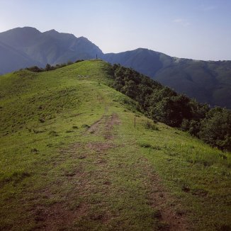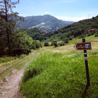 Een lange afdaling richting Pontremoli, in de verte zicht op het Nationaal park dell’ Appennino.