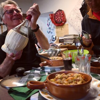’s Avonds mag ik koken en vond het heel fijn een keukenschort aan te trekken. Zie je mij al staan pink schort en vijftenen schoenen, de pollepel in de hand. Het was niet enkel leuk te koken, het was nog superlekker ook. Een pelgrim kon er super van genieten, de andere pelgrim…. Jah… ‘schtroumpfsmécontant’.