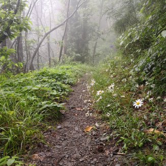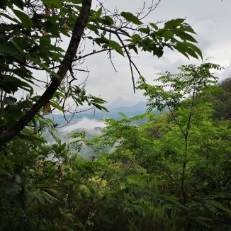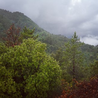 De regen is wat minder geworden. In de verte op mijn linkerkant een dorp op de top van een heuvel. Het vergezicht is prachtig. Witte mist afwisselend tussen de heuvels. Een donker grijze hemel. De regen klettert terug. Krakkkk. Donder… Bliksem… Krakkkk…Een zin komt door meheen ‘Eli, Eli, lemah sabachthani’. Tranen vloeien terug.