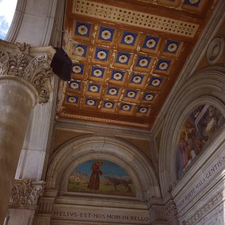 Een fresco van Maria die de borst geeft in een abdij en dan zijn er landen die moeilijk doen over vrouwen die de borst geven op straat. Een pater gekleed in zijn gewaad bekijkt de rozen en speelt met zijn hond in de binnentuin. Overal waar ik kijk vind ik ergens wel een klein hoekje waar ooit wel een volledige fresco te zien was. Als iemand mij zou zeggen je mag hier verblijven, zou ik geen neen zeggen.