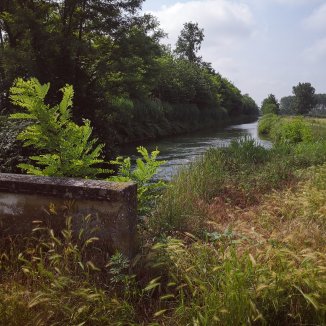 Een lang bocht in volle zon neemt me mee op een pad die de diepte ingaat richting een boomgaard. Ik verdwijn in een klein bosje. Een oase van frisheid, omcirkeld door bomen en aan mijn voeten, een stromend riviertje. Rotsblokken wijzen me verder de weg. Ik ga op een steen staan, sluit mijn ogen en wordt de omgeving gewaar. Zalig.