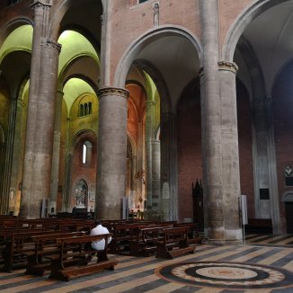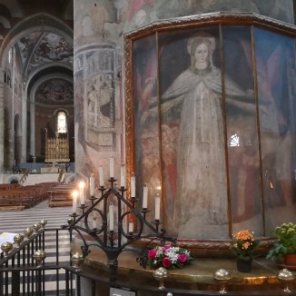 In Fiorenzuola d’Arda. Een priester heet me welkom. “Vous venez de où ?”, vraagt hij. “Belgio” “À piedi !”, volgt snel. “Si” “Et pourquoi vous faite cela ?” “Bonne question mon père. Je crois que je peut dire que j’ai étais appeler au chemin”.”Vous faites déjà cela combien de fois ?” Ik leg hem in het kort welke pelgrimstochten ik achter de rug heb en het ontstaan. “C’est beaucoup !”, met wat een verwonderde stem. “C’est qui, qui vous appeler au chemin Dieu, Jezus, un Ange ?” Je sait pas mon père et je préfère ne pas donner un nom, fixé ou mettre dans une case. Je préfère garder l’ouverture” ” Vient”, hij neemt me mee naar zijn bureau. Hij wijst mij een poster aan ‘Église Saint-Michel d’Aiguilhe’ in le Puy en Velay. “Ah, oui je connais. J’y suis aller.” Hij zegt niets meer. Ik val wat uit de lucht…hoor als een echo zijn vraag terug. Moet ik nu toch een antwoord geven op zijn vraag. Ik ben wat van slag op het moment. Na Pavia, de triskele,…