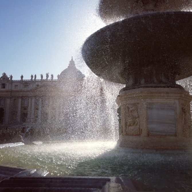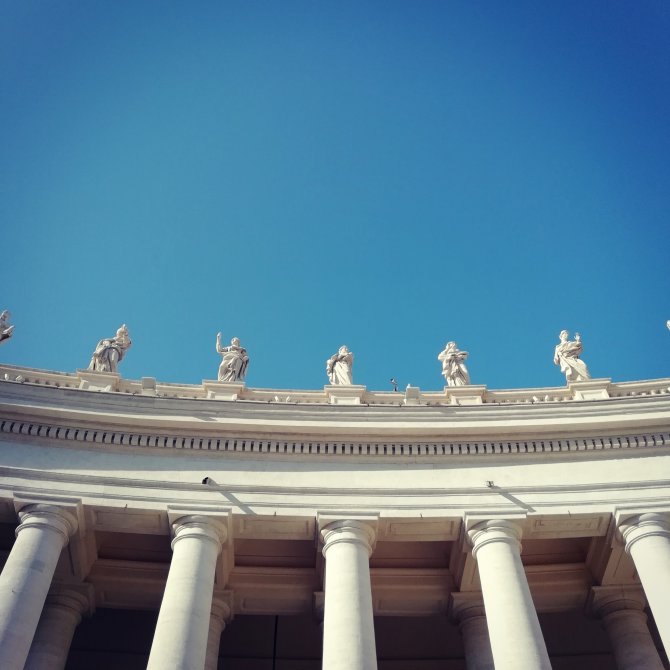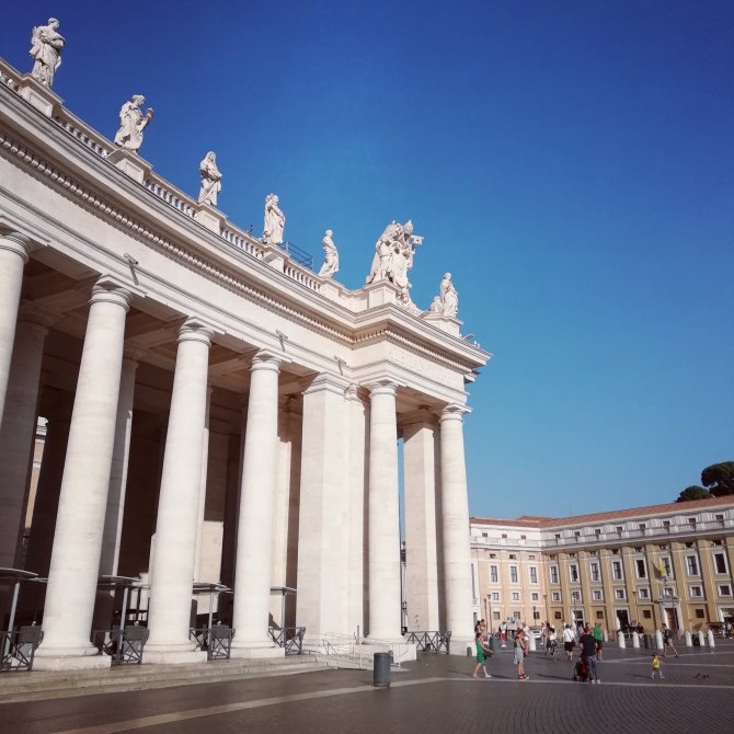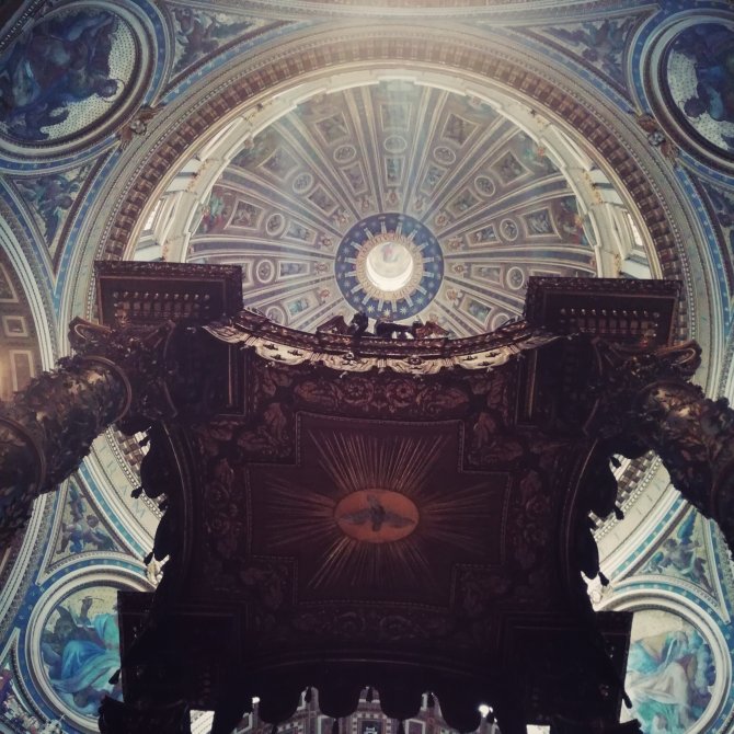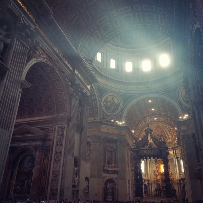 We verlaten het museum, het laatste bezoek van de dag is de Sint-Pieters Basiliek. We stappen binnen…. Iets enorm komt op me af zodra ik binnenstapt, alsof ik een ondoorzichtbaar gordijn ben doorgestapt. Ik weet niet hoe ik me anders kan uitdrukken. Ik barst uit in tranen… Ik krijg er geen woord meer uit… Vol… Groots… Ik kijk Jean-Paul aan… Ook hij is aan het wenen… Zonder woorden begrijpen we elkaar… Ik stap verder naar voor… Ik laat de indrukken verder op me afkomen… Af en toe overvalt me terug een huilbui. “Mon chemin ce fini que maintenant”, zegt Jean- Paul. Inderdaad pas nu hier in de basiliek Sint Pieters eindigt deze pelgrimstocht van la Via Francigena. Een krachtig moment…onderhuids Ingeprint…