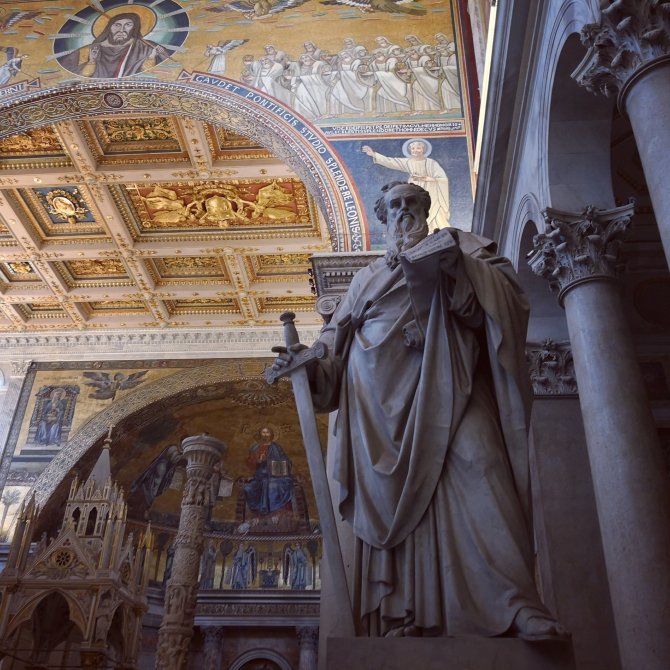 We bezoeken de Saint-Paul Basiliek. Groot, indrukwekkende kunst en architectuur binnenin.