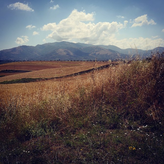 Rechts van me… aan de horizon, de zee. Links de bergen. Villa’s, olijf en kiwiboomgaarden. Druivelaars. Weelderige oleanders. De zoete soms overheersende geur van de Jaminoides…