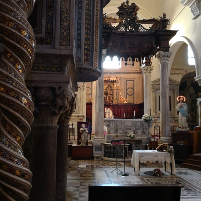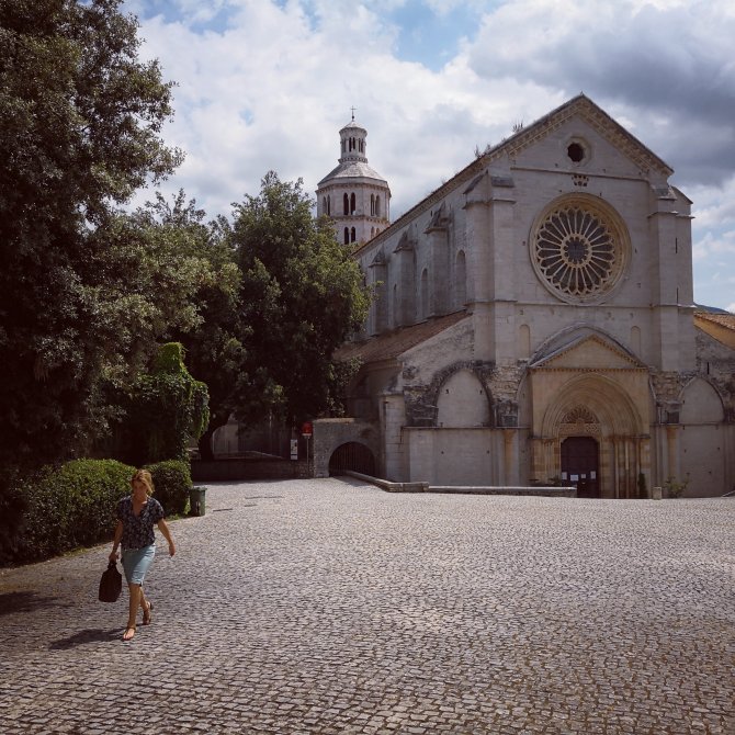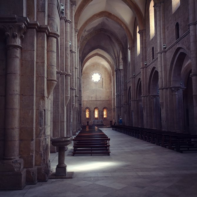 In de prachtige Abbadia di Formoso geniet ik van de frisheid en de stilte. Een prachtige abdij met een goed bewaarde kloostergang. Ik blijf er wat rondhangen. Het brandglas in de kerk is gelijkaardig als deze van in de Basilica Sao Paolo in Rome. Het ziet er bijna uit als een vel van een boom met zijn tekeningen en spiegelingen.