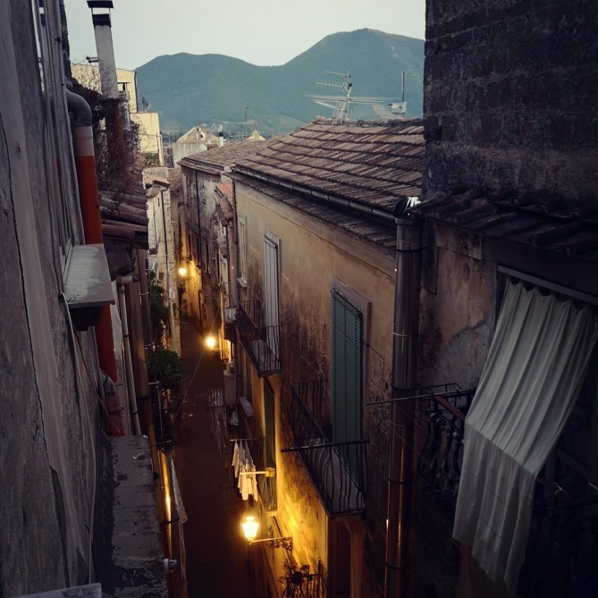 Moe kom ik aan Sessa Aurunca. Ik stap binnen in een fotozaak, zo eentje waar de tijd is blijven stilstaan. Een vriendelijke dame helpt me aan een overnachting. Met mijn vertaler op de gsm proberen we te communiceren. Ze bied me een stoel, koffie en frisdrank aan. Ik zeg aan alles geen neen… Uitgeput…. Na een half uur kom ik terug op krachten. Ik voel zo mijn hele wezen terug in zachtheid komen. Om 20 uur wordt ik verwacht aan de Duomo meld de dame. Al zoenend nemen we afscheid. De vrouw vraagt me haar mee te nemen op de weg, zonder enige twijfel… ‘Si, si’, zeg ik haar.