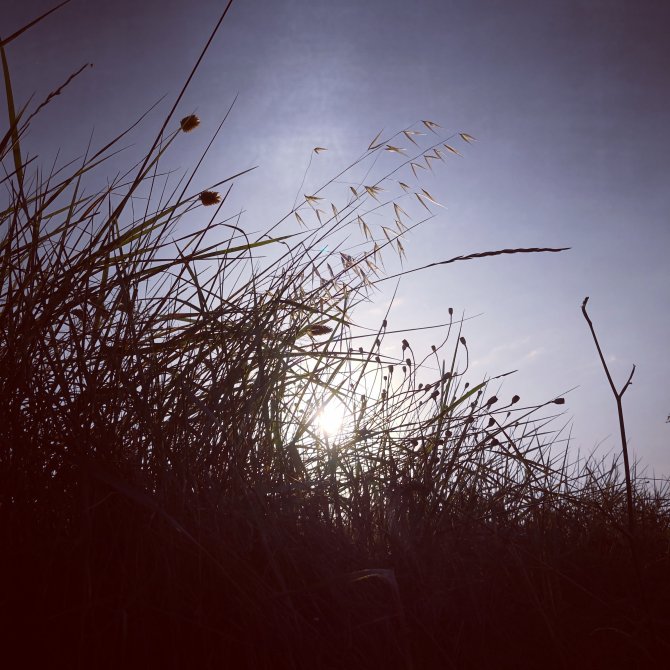 Ik waag mijn kans tussen de hoge grassen van meer dan een meter. Door de zon is de huid wat gevoeliger en dit is duidelijk voelbaar wanneer de grassen in mijn huid prikken en snijden.