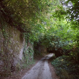 Pas na 11 uur verlaat ik Bolsena. Een enorm verschil is voelbaar…van het samen wandelen naar terug op mijn eentje. Hoewel ik voorstander ben om pelgrimstochten alleen te doen, omdat je dan werkelijk veel dieper naar binnen kan gaan. Bewuster op de weg bent. Kon ik het samen stappen ook appreciëren, de pelgrimstocht heeft voor mij dan wel een totaal andere gevoel. De aandacht gaat niet meer naar wat rond mij te zien is, de natuur, de dieren… wel naar de mens. En eigenlijk voel ik al een eindje op deze weg dat de tijd er rijp voor is om naar en met de ander in contact te komen op pelgrimstocht en. De verschillende contacten met pelgrims en hospitaliero hebben me hierbij zonder ze het zelf wisten, bij geholpen.