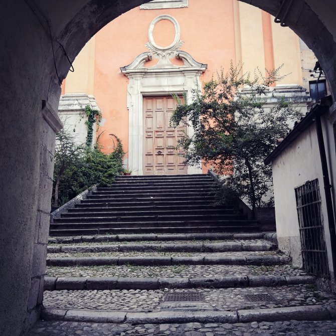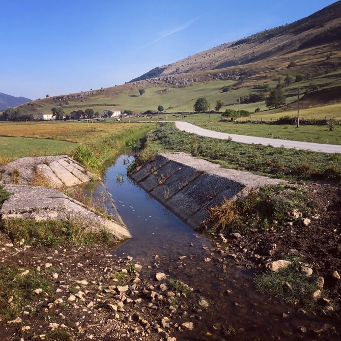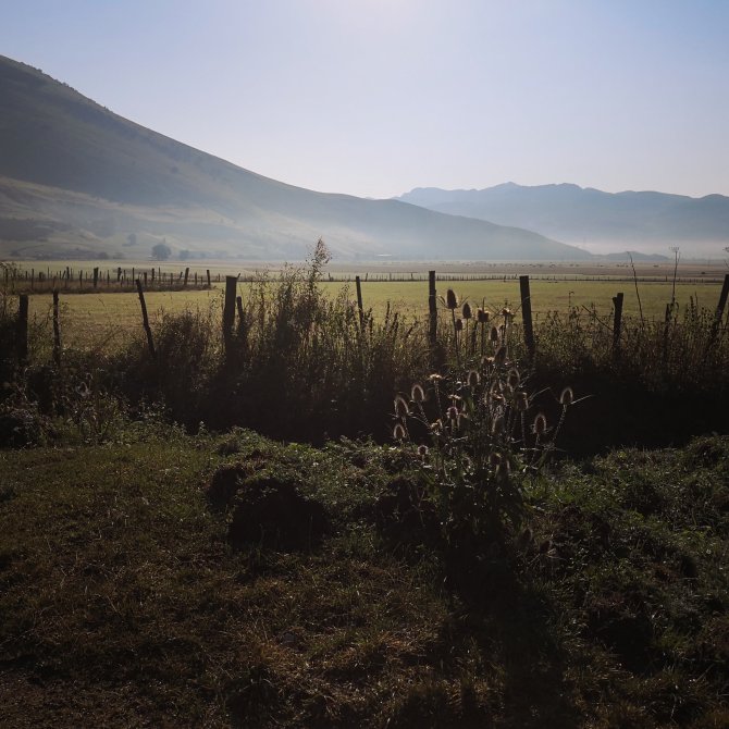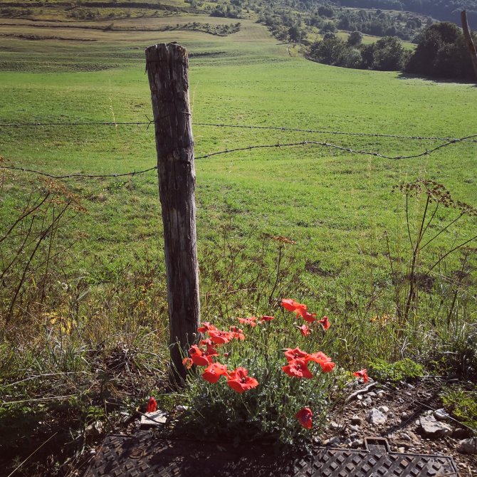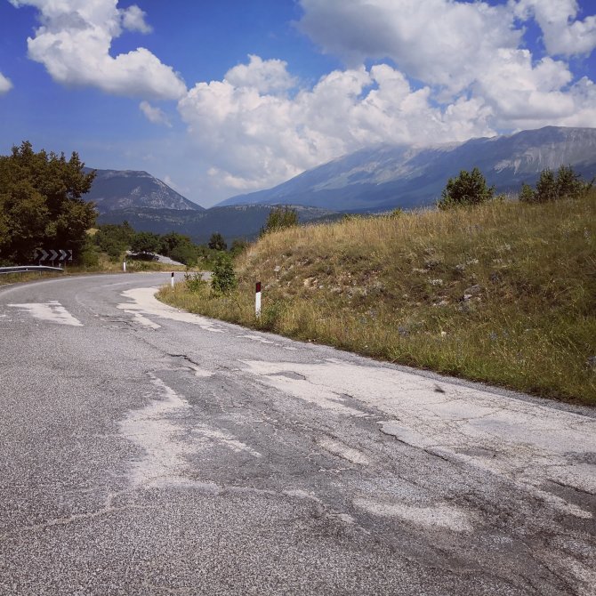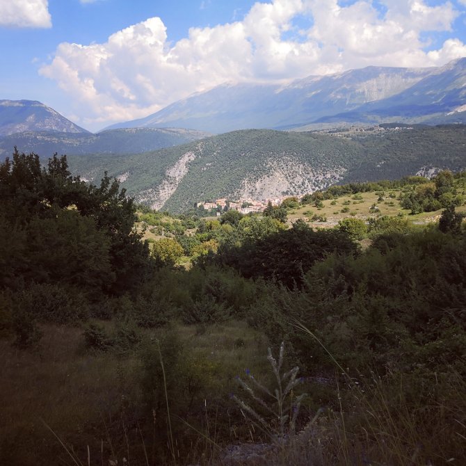 Ik denk terug aan het Christusbeeld van gisteren in de kerk van Pescocostanzo. Een zwaar toegetakelde en uitgemergelde Christus, een zeldzaamheid… Anno 2018…toch meer dan tijd dat dit beeld eens door de parochie in vraag wordt gesteld. Na een deugddoende avond met hartelijke mensen, een zalige nacht en nog voor ik het dorp verlaat ontmoet ik de eerste pelgrims sedert Monte Sant’Angelo. Deugddoend. We wisselen in het kort onze weg uit… even op de foto.