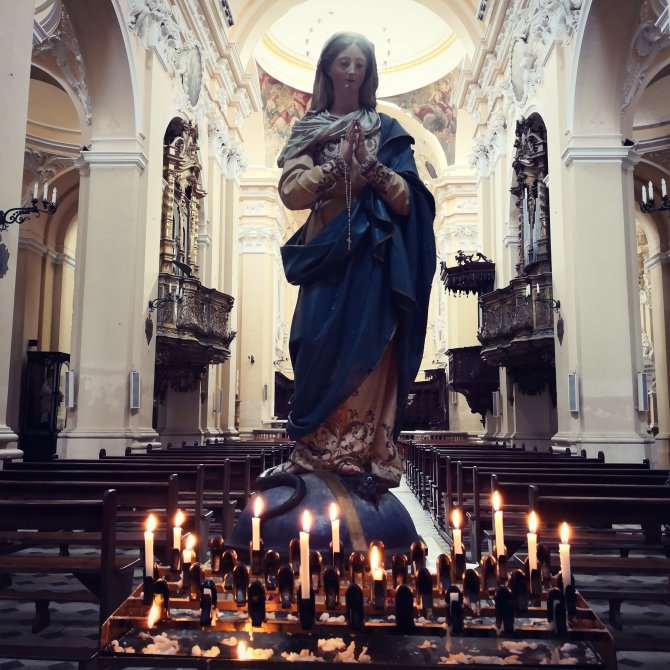 Ik bel aan. Twee zusters staan aan het venster Ma en Luz… ze bellen naar hun overste, een priester…neen…ze voelen zich wat verveeld… een fijne babbel samen en ze blijven met man en macht samen zoeken. Het contact ligt supergoed en klikt onmiddellijk. Uiteindelijk is het gelukt en beleef ik een heel warme en aangename avond met zusters van drie verschillende orde, en vier verschillende nationaliteiten (Myanmar, Filipinen, Burundi, Indonésie). Een douche, een avondmaal bij zuster Luz en Ma. Aan tafel haal ik een klein papiertje uit en vouw het open. “Zuster, ik heb iets voor je. Ik weet niet waarom. Ik voel dat ik jullie dit mag schenken”, vertel ik hen in het Engels. “Un Pietra de la grotta de Monte Sant’ Angelo”. Even valt een stilte. Een intense, stevige verbondenheid is voelbaar. We kijken elkander aan… Zuster Ma gaat in de andere ruimte en komt terug met een beige vierkanten doosje. Ze haalt het deksel eraf…. Rozenblaadjes… La Pietra komt terecht op een bed van Rozenblaadjes… Diep vanbinnen voel ik dat dit juist is…. Mille Grazie.