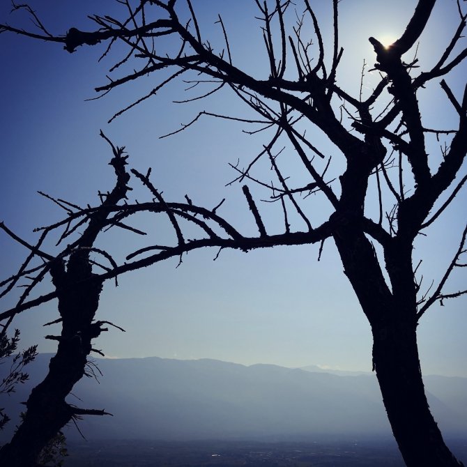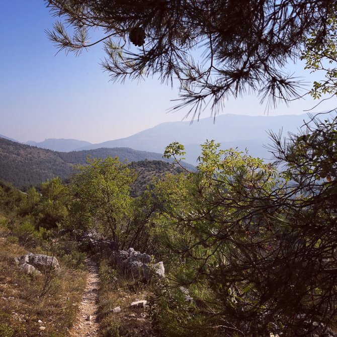 Het is net door niet te ‘willen’, gewoon te zijn, mijn lijf te voelen in zijn totaliteit. Door mijn tanden niet in iets te zetten, wel door ontspannen in beweging te komen en te werken met de innerlijke kracht. Op deze manier hou ik het niet alleen vol, het brengt me ook de mogelijkheid te genieten van wat is. En zo gaat het ook met deze pelgrimstocht… geen einddoel voor ogen houden, geen kilometers, geen tijden… Behalve de natuurelementen. Boven aangekomen op de top geniet ik van een prachtig vergezicht… In zachtheid op de top… een vlinder komt me vergezellen.
