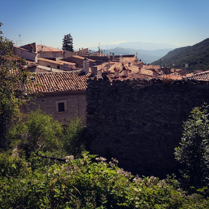 Van het hoogplateau daal ik kilometers af van ongeveer 1300m naar 600m. Via een duidelijk zichtbare weg in het bos. De dorpen hebben ontzettelijk veel hoogkranen en als ik goed kijk… Vernielde huizen… In 2009 zijn in de provincie L’Aquila zware aardbevingen geweest… wanneer ik Fossa in wandel kan ik niet naastgelegen kijken een onbewoond dorp op 3 families na. Voor de rest is gans het dorp onbewoonbaar verklaart. De gevels zijn zwaar gestut… Meubelen… Etenswaren… Boeken… alsof iedereen weg gevlucht is en nooit terug gekomen. Vele deuren zijn op slot om inbraak te verkomen… Ik wandel erdoor…. Ik word stil van binnen… heel stil…