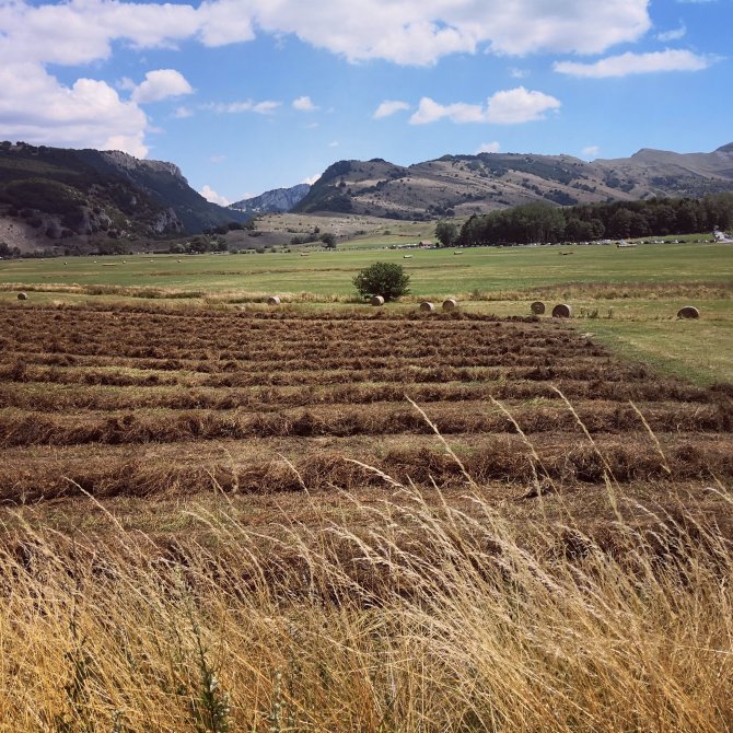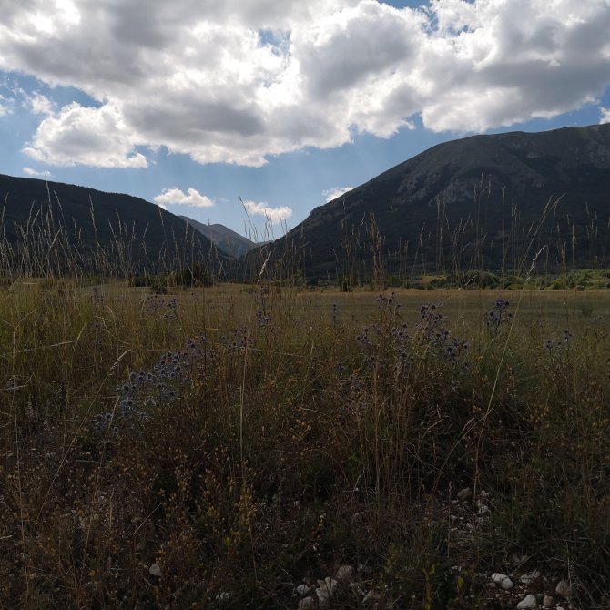 Terwijl mijn benen de klimmen trotseren, bruis ik van de creativiteit… mijn korte haltes geven me de tijd deze te noteren en uit te rusten…. En zo ga ik naar bovennnn….Links onder de rijweg met ‘zoevende zinzare’s’ op twee wielen…moto’s. Op de top kom ik aan in een rustig dorp Ovindoli… allé dat dacht ik… het dorp is zo klein niet, aan de andere kant is er een nieuwer stuk uitgestrekt over een hoogvlakte. Gelukkige met geen te grote appartementsgebouwen die het prachtig landschap vernietigen. Nu is het me duidelijk waar al die zoeven de voertuigen naartoe zijn. De plaats bij uitstek om een vrije dag te vullen…. De ene vleesrestaurant na de andere… Familieparken…en ze hebben geen ongelijk om naar hier te komen, het voelt hier zalig.