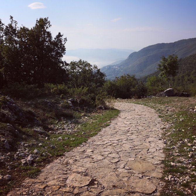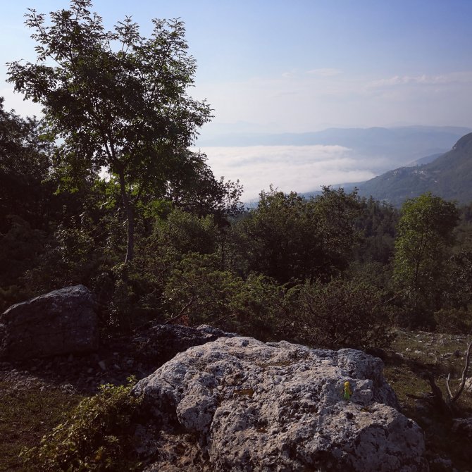 Twee uur klimmen in een rustige natuur. Wanneer ik op de top ben, heb ik een prachtig zicht op de Rieti vallei. Boven een open groene vlakte met grasvelden, verschillende bloemen, eikenbomen en kastanjebomen… Het rare is dat ik hier af en toe een wagen tegenkom, op dit o zo waardevol gebied. Mensen wandelen er met rieten à den om de arm… De vochtigheid en afwisselende zon zorgen ervoor dat de eerste paddestoelen hier al te vinden zijn.