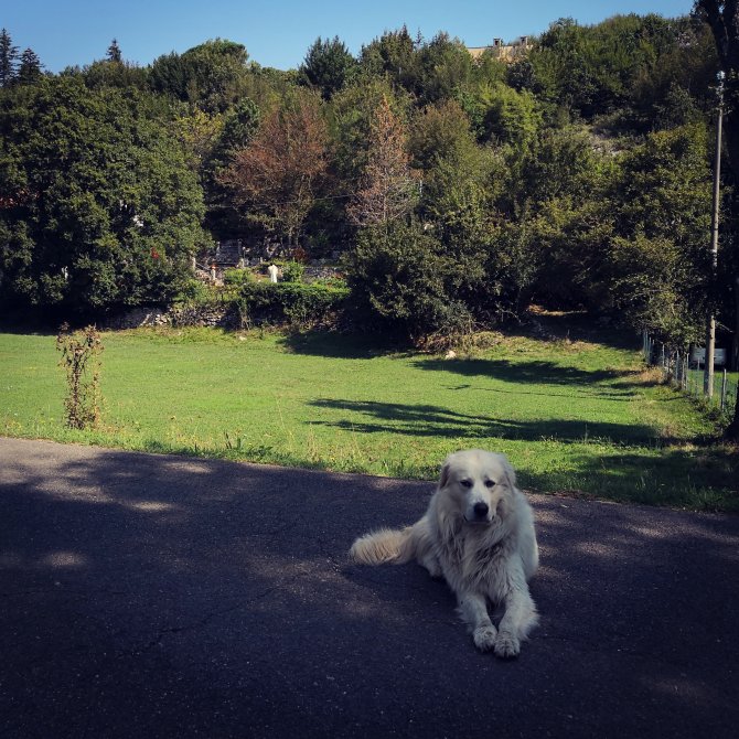 Een omgeving zoals een paar dagen geleden, een omgeving van gedragen worden. Zelfs de hond zit volledig in de energie van wat de omgeving met zich meebrengt…in rust midden op de straat… Een zeldzaamheid in Italië, meestal reageren ze angstig en/of agressief