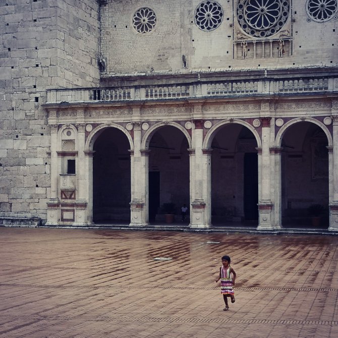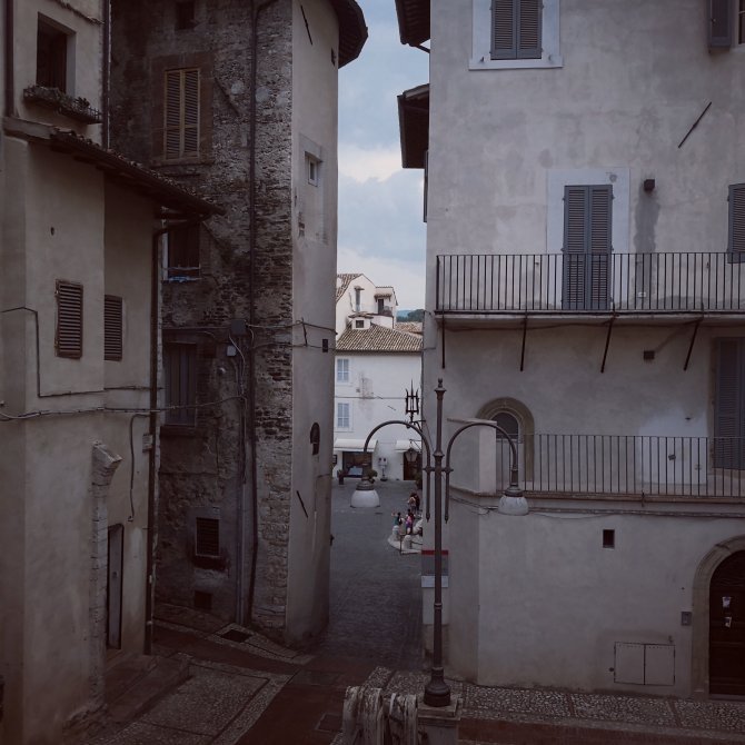 In Spoleto ga ik binnen in de kathedraal. De ingang gebeurt via een kapel die een shop geworden is. Het valt me op dat mensen deze ruimte gewoon voorbij wandelen, weinig tot geen zien wat deze ruimte met zich meedraagt. Verbluft.