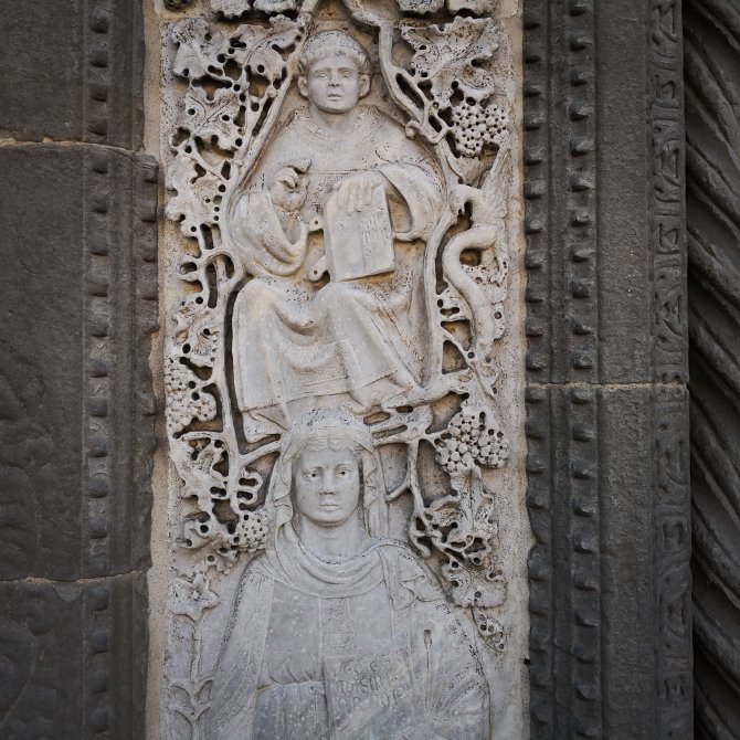 Op mijn linkerkant de deur naar de kerk van het convento. Een lange houten bank. Een persoon. Een wit tenue, op het hoofd een wit katoenen muts. Een zuster. Ik neem afscheid van de twee zusters.