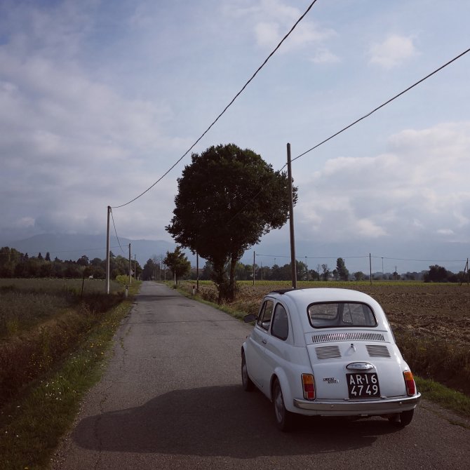 Een vrouw staat in de tuin vijgen te plukken. We zeggen elkander een goede dag. Een witte mini wagen komt aangereden. Ik blijf staan en laat hem door. Wat later zie ik de wagen terug. Een grote man stapt uit… Soepel zijn is wel een noodzaak in zo een wagentje.