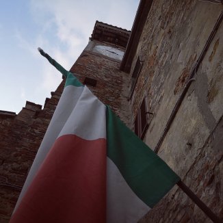 Een verlaten dorp in Toscaanse tinten… Een brievenbus die onderdak is geworden voor de bijen. Een gebouw die niet meer onderhouden wordt. Ernaast een immense bewoonde villa. Poggio a Luco. Af en toe steek ik mijn neus in mijn vers gewassen kledij.