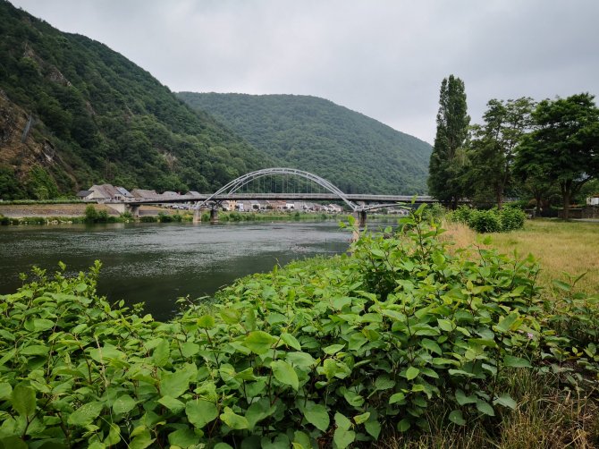 Aan de grens staan grote gestreepte wegversperringen. Ik steek ze voorbij… ik ben wat verstrooid en mis een wandelweg. Ik waag me verder door de industrie one van Vireux…een lange omweg… Hmm, ik check mijn kilometers… nog twee uur. Ik haal het niet om op deftig uur bij de vrienden aan te komen. Michelle komt me ophalen… Oef… Morgen een rustdagje in Chooz.