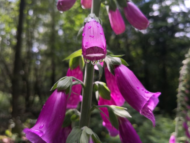 Links een loofbos, rechts een naaldbos waar tal van mierenhopen met hun mierenkolonies een prachtig bouwwerk creëren met af en toe omgeven door Digitalissen. Imposante constructies voor deze kleine niet te onderschatten insecten nemen soms een proportie van 1m50.